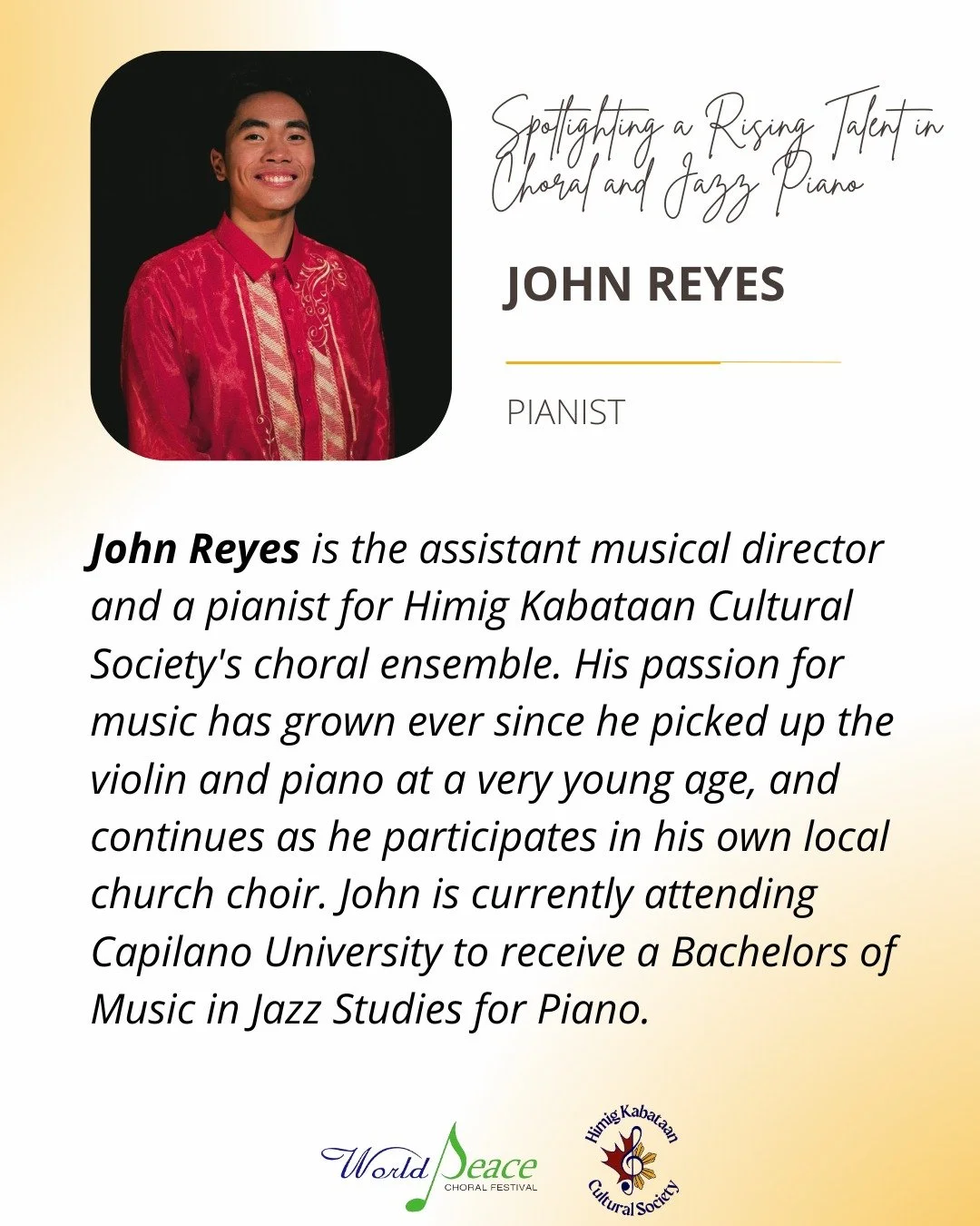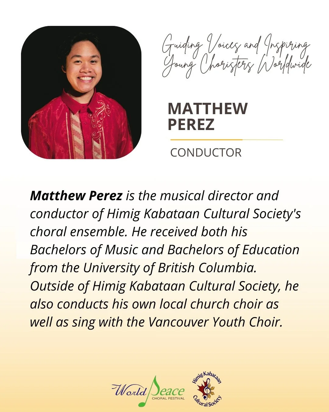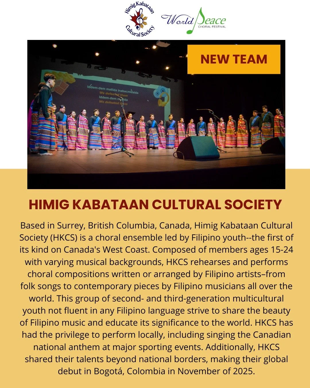 It is an honour for Himig Kabataan Cultural Society (HKCS)’s choral division, HIMIG, to be invited to participate in the 15th World Peace Choral Festival (WPCF), which will take place in Vienna, Austria, from 23 to 26 July 2026.